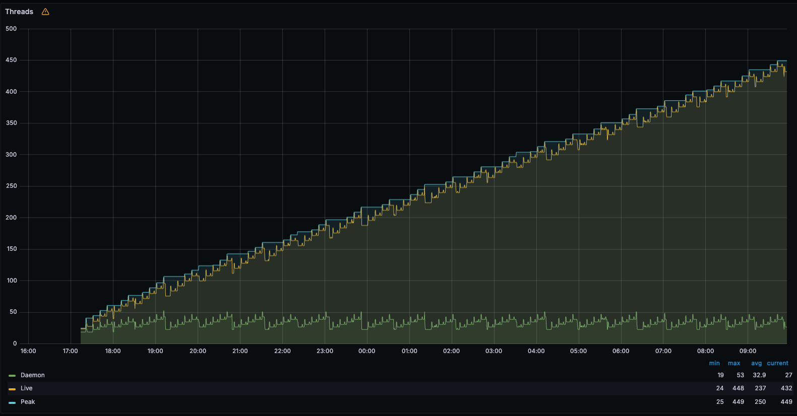 - DeamomThreads 일정 한 패턴으로 증가와 감소를 반복하고 있다.
